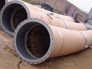 結(jié)構(gòu):大口徑膠管是由內(nèi)膠層,單層或多層夾布纏繞層和簾子線編織與外加金屬螺旋絲外膠層組成。